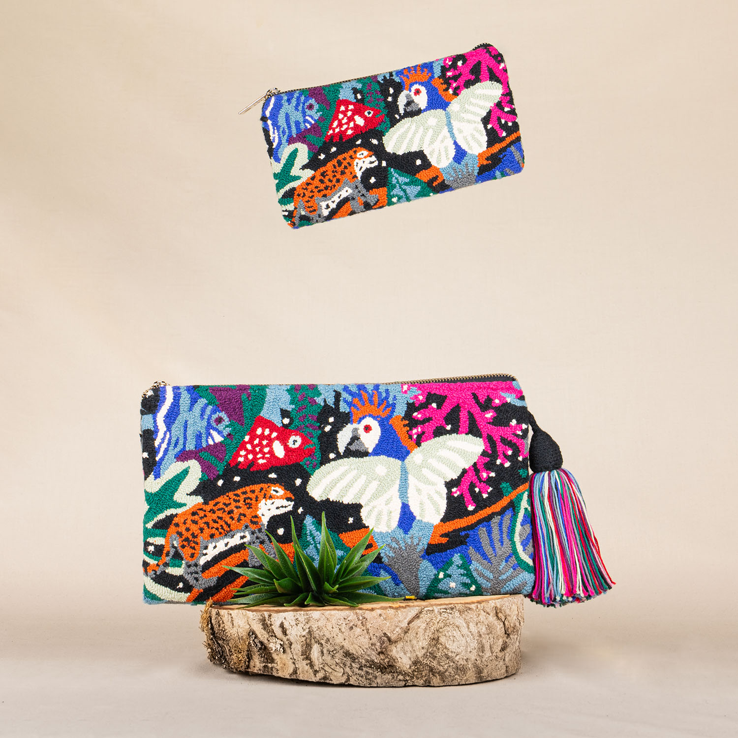 Nachhaltige Clutch, gefertigt aus Bio-Baumwolle mit Baumwollfutter und italienischem Reissverschluss. Trage sie als Umhängetasche, indem du einen Trageriemen befestigst. Hergestellt in Venezuela.