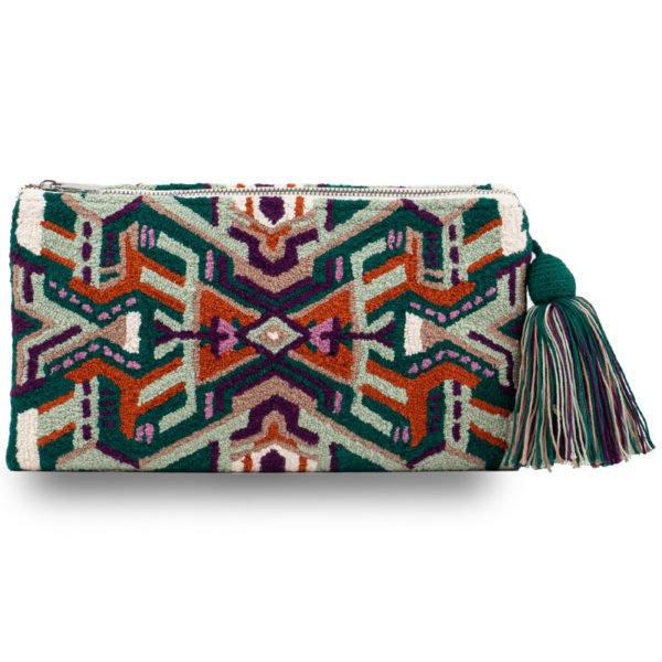 Sustainable pouches and clutches made of GOTS certified organic cotton with cotton lining and Italian zipper. Wear it as a shoulder bag by attaching the included adjustable leather strap. Made in Venezuela.