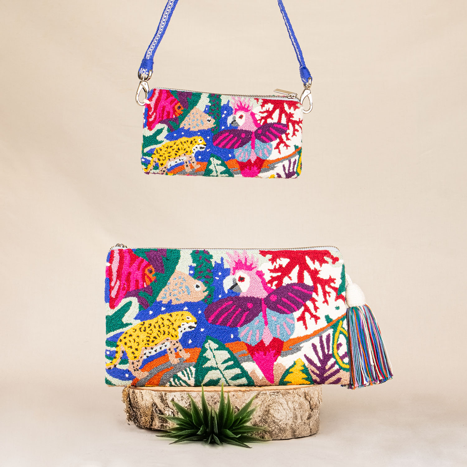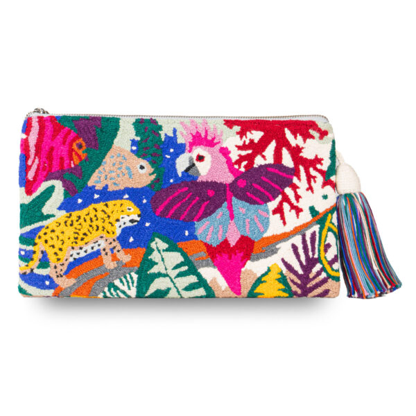 Sustainable pouches and clutches made of organic cotton with cotton lining and Italian zipper. Wear it as a shoulder bag by attaching a strap. Made in Venezuela.