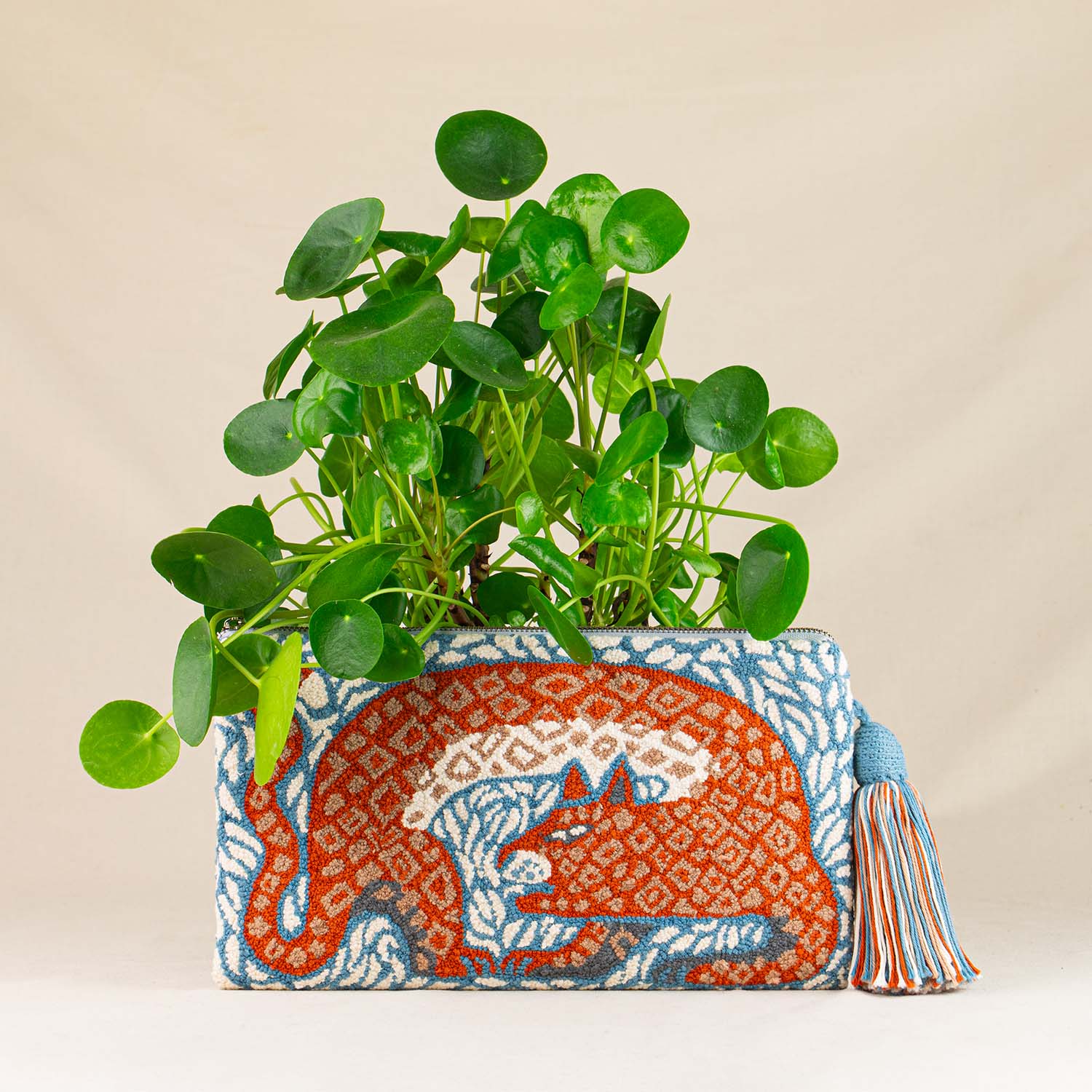 Sustainable clutch made of GOTS certified organic cotton with cotton lining and Italian zipper. Wear it as a shoulder bag by attaching a strap. Made in Venezuela.